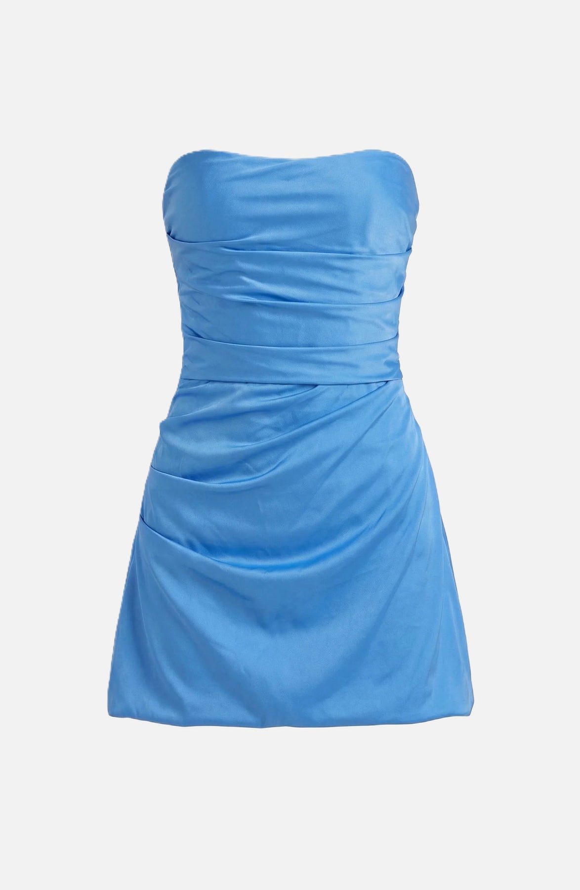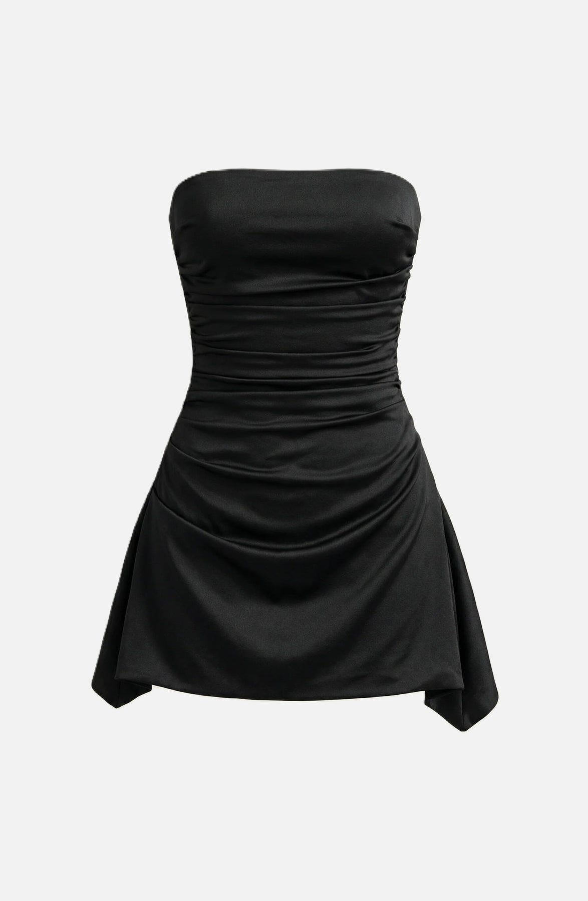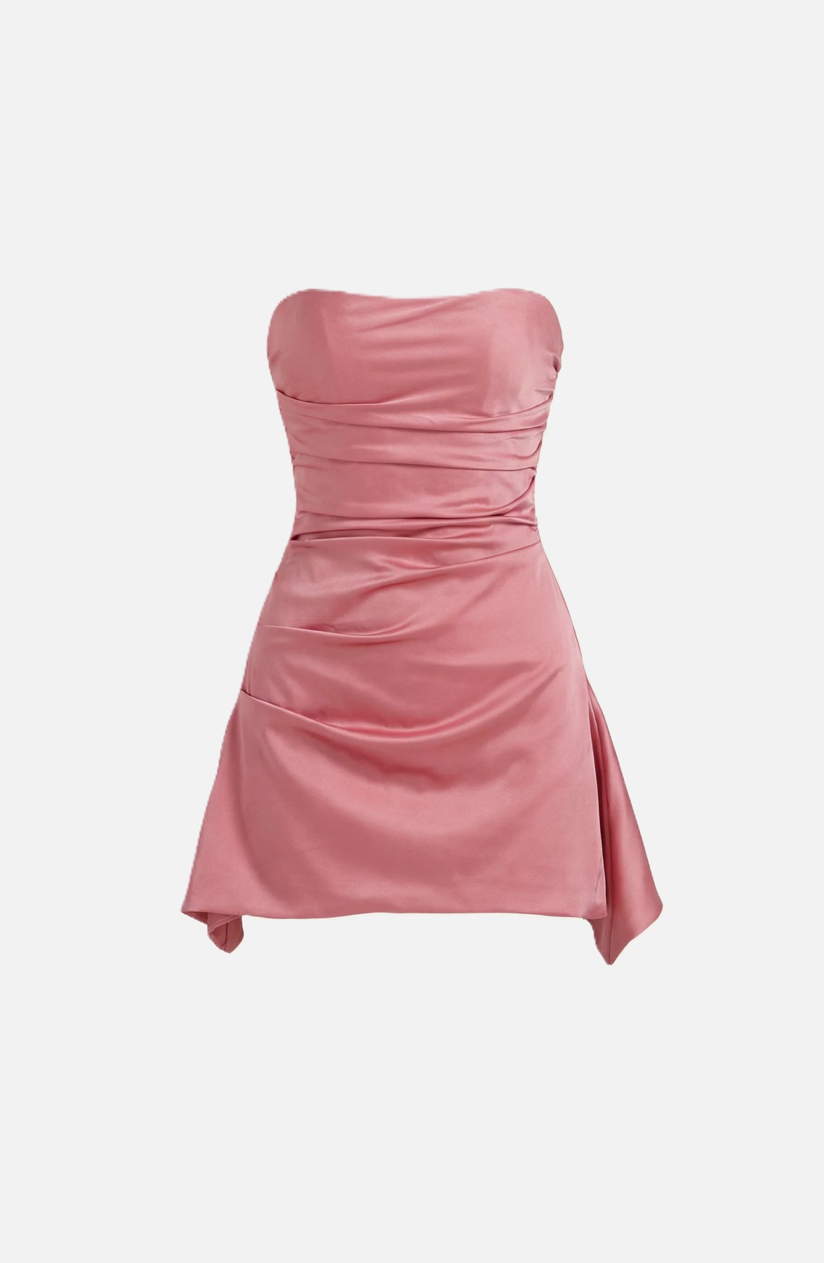 Designed to flatter and elevate, this strapless party dress blends soft draping with refined ruching to create a confident, modern silhouette. The structured bodice offers a clean, secure fit while the asymmetric hem adds subtle movement and visual interest—perfect for evenings when you want to look polished without trying too hard.