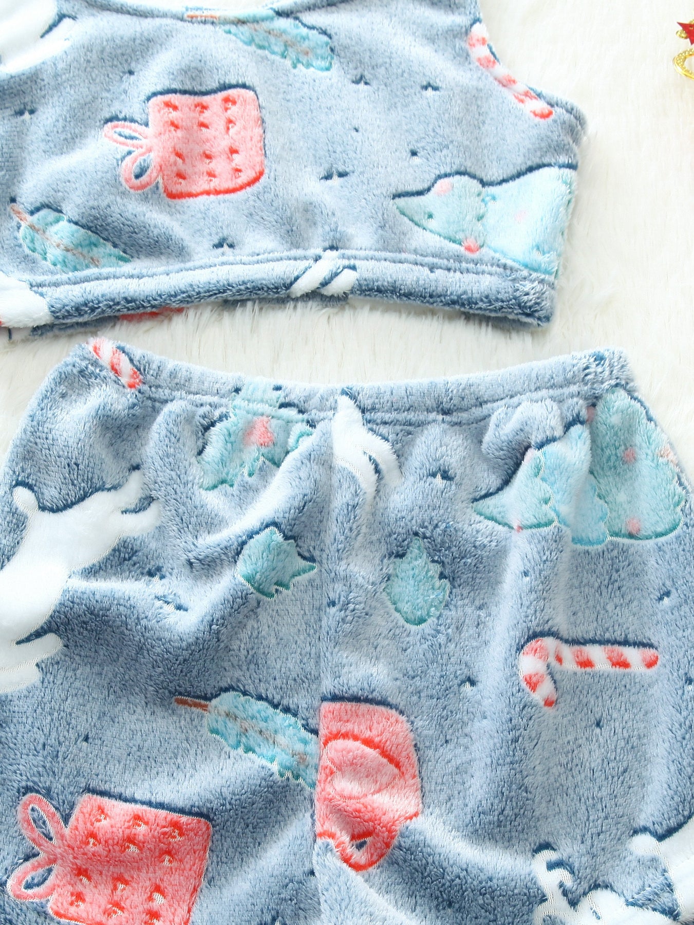 • Ultra-soft, warm Christmas pajama set with glow in the dark gift print